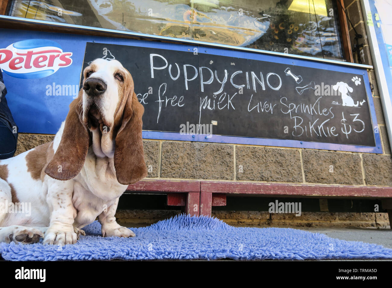 Melbourne Australia Scenes A Basset Hound Dog Waits For His Coffee At A Cafe Stock Photo Alamy